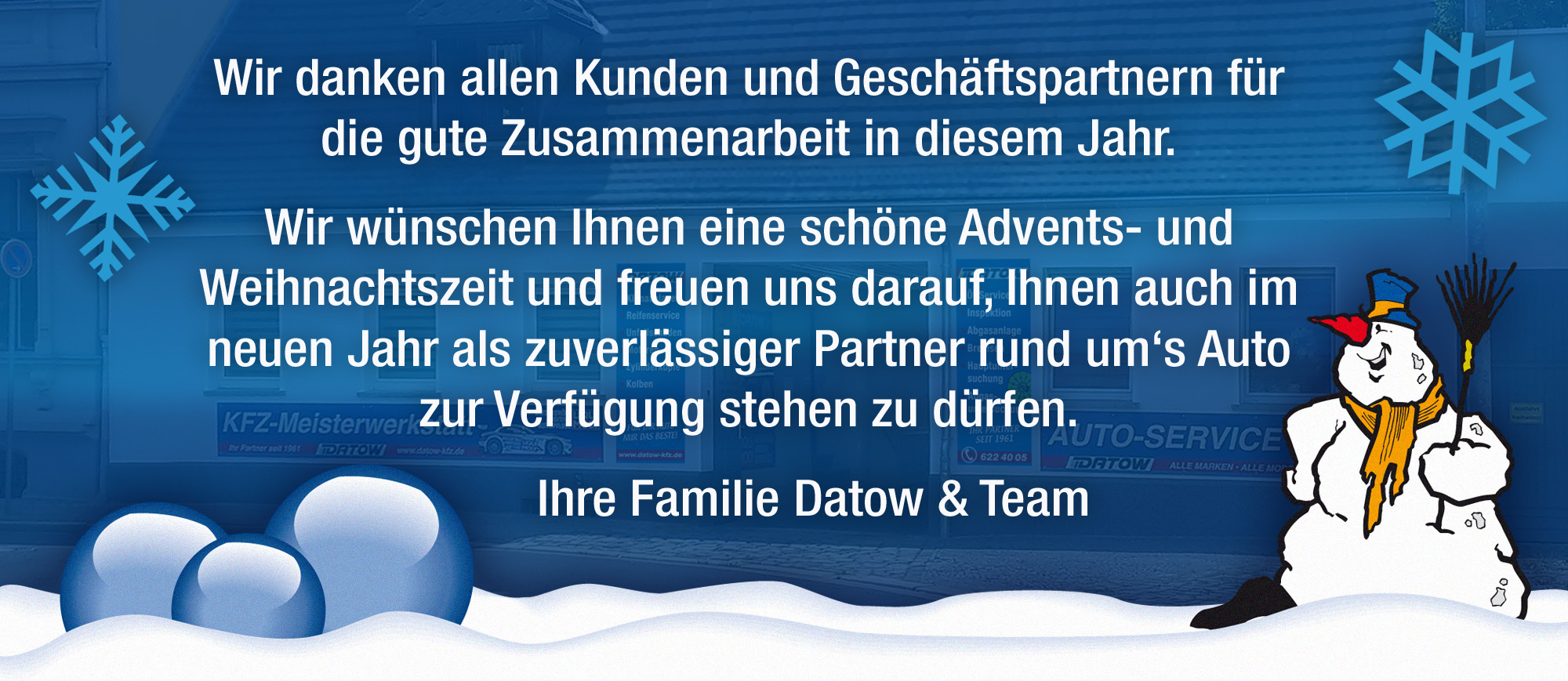 Der Name Datow ist seit über 50 Jahren eng mit dem Automobil verbunden – eine lange Tradition, der wir uns täglich verpflichtet fühlen. Hochwertige Materialien und Ersatzteile, qualifizierte Mitarbeiter und viel Erfahrung stehen Ihnen mit uns zur Verfügung. Auf unsere Leistungen können Sie vertrauen – zu Ihrer Sicherheit.